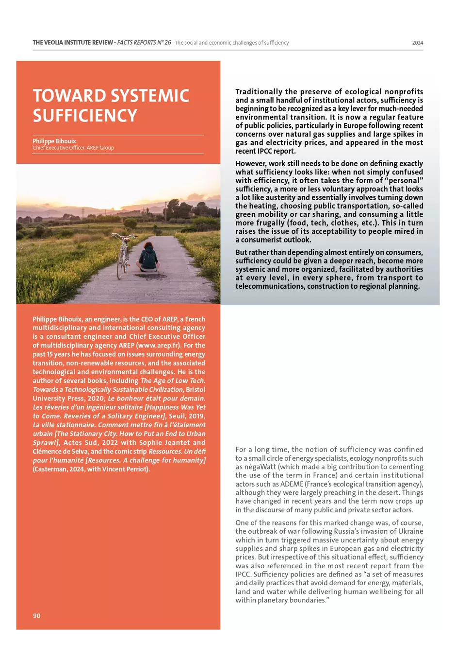 Traditionally the preserve of ecological nonprofits and a small handful of institutional actors, sufficiency is beginning to be recognized as a key lever for much-needed environmental transition. It is now a regular feature of public policies, particularly in Europe following recent concerns over natural gas supplies and large spikes in gas and electricity prices, and appeared in the most recent IPCC report.