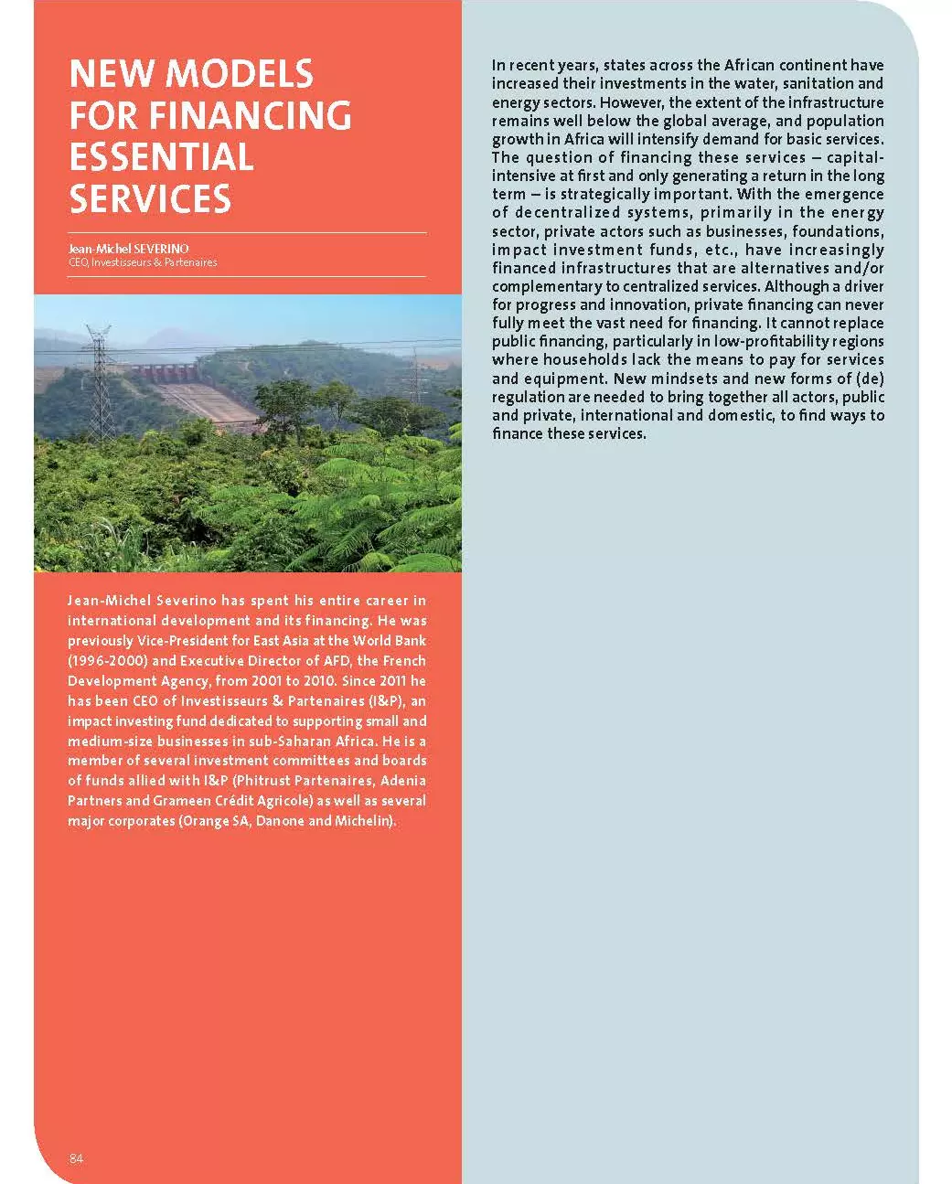In recent years, states across the African continent have increased their investments in the water, sanitation and energy sectors. However, the extent of the infrastructure remains well below the global average, and population growth in Africa will intensify demand for basic services. The question of financing these services – capitalintensive at first and only generating a return in the long term – is strategically important. With the emergence of decentralized systems, primarily in the energy sector, private actors such as businesses, foundations, impact investment funds, etc., have increasingly financed infrastructures that are alternatives and/or complementary to centralized services.
