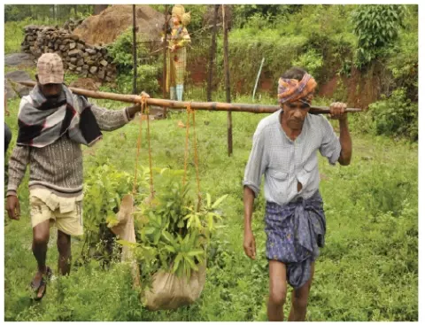 Keywords: livelihoods, Adivasi, carbon credits, global positioning system, GPS, low external input sustainable agriculture, LEISA, Patta, village horticultural coordinator