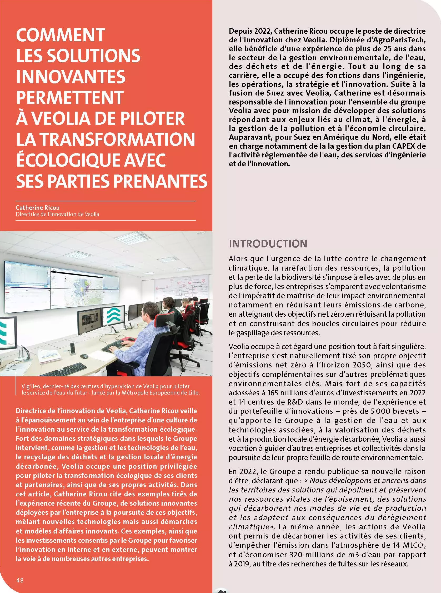 Depuis 2022, Catherine Ricou occupe le poste de directrice de l'innovation chez Veolia. Diplômée d'AgroParisTech, elle bénéficie d'une expérience de plus de 25 ans dans le secteur de la gestion environnementale, de l'eau, des déchets et de l'énergie. Tout au long de sa carrière, elle a occupé des fonctions dans l'ingénierie, les opérations, la stratégie et l'innovation. Suite à la fusion de Suez avec Veolia, Catherine est désormais responsable de l'innovation pour l'ensemble du groupe Veolia avec pour mission de développer des solutions répondant aux enjeux liés au climat, à l'énergie, à la gestion de la pollution et à l'économie circulaire.
