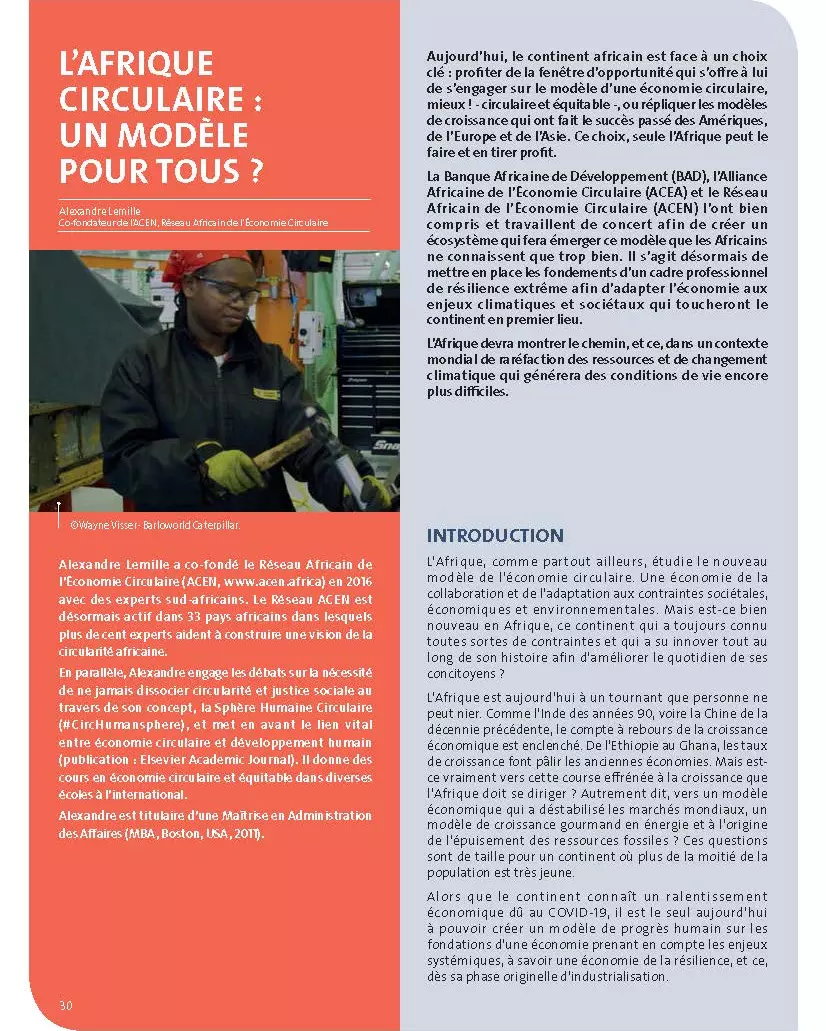 Aujourd’hui, le continent africain est face à un choix clé : profiter de la fenêtre d’opportunité qui s’offre à lui de s’engager sur le modèle d’une économie circulaire, mieux ! - circulaire et équitable -, ou répliquer les modèles de croissance qui ont fait le succès passé des Amériques, de l’Europe et de l’Asie. Ce choix, seule l’Afrique peut le faire et en tirer profit.