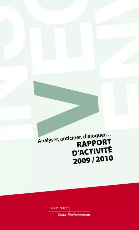 Téléchargez les derniers rapports d'activité de l'Institut Veolia : Pagination First page 1 Page1 Current page2 Rapport d'activité 2010-2011 Rapport d'activité 2010-2011 Téléchargez le rapport d'activité 2010-2011 (version française). Rapport d'activité 2010-2011 ( PDF - 3.51 Mo ) Rapport d'activité 2009-2010 Rapport d'activité 2009-2010 Téléchargez le rapport d'activité 2009-2010 (version française). Rapport d'Activité 2009-2010 ( PDF - 1.92 Mo ) Rapport d'activité 2007-2008 Rapport d'activité 2007-2008 Téléchargez le rapport d'activité 2007-2008 (version française). Rapport d'Activité 2007-2008 ( PDF - 610.16 Ko ) Rapport d'activité 2006 Rapport d'activité 2006 Téléchargez le rapport d'activité 2006 (version française). Rapport d'Activité 2006 ( PDF - 529.52 Ko ) Pagination First page 1 Page1 Current page2